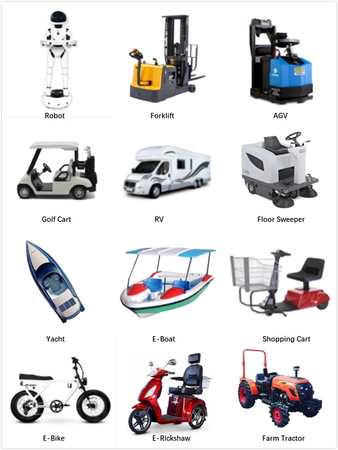 | ceisiadau | Cartiau Golff, Fforch godi Trydan, Car Cyflymder Araf; AGV, Beic Modur Trydan; Car gweld golygfeydd; RV, beic tair olwyn, cerbydau trydan, Trydan Cadeiriau Olwyn, Systemau Pŵer Trydan, Cyflenwadau Pŵer Di-dor, Systemau Storio Ynni Solar, BOATS |