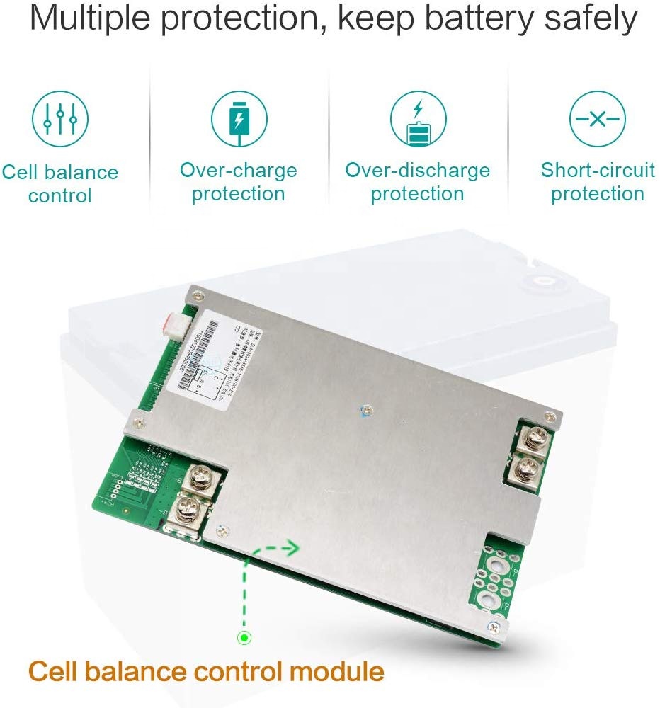 Protection Amddiffyniad awtomatig adeiledig ar gyfer gor-wefr, gor-ollwng, dros dymheredd cyfredol a gor-dymheredd.