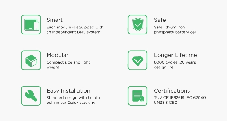 Stadard Ardystio a Diogelwch | TUV / CE / EN62619 / IEC62040 / UN38.3 / CEC Achrededig | |